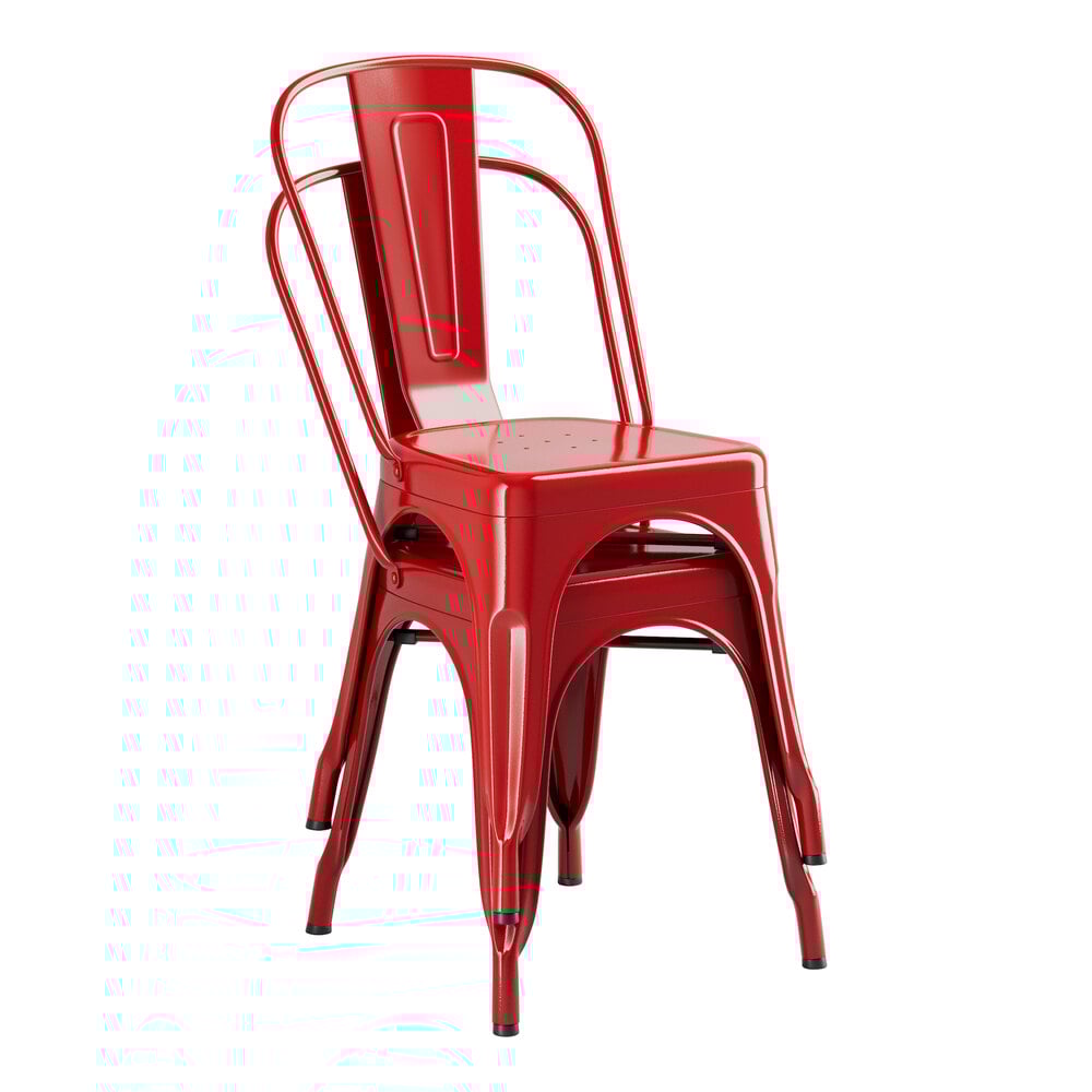 This set is made of durable steel and coated to withstand years of use. The vibrant ruby-red color adds a fun, colorful touch to any setting and is sure to be a contemporary design choice that guests love. Comfortable and stylish, this strong yet lightweight set is an excellent choice for your indoor or outdoor dining area. To save you money on shipping costs, the table ships unassembled. All required assembly hardware is included so you can quickly set it up in its proper space and let your guests enjoy! The chairs ship fully assembled.
