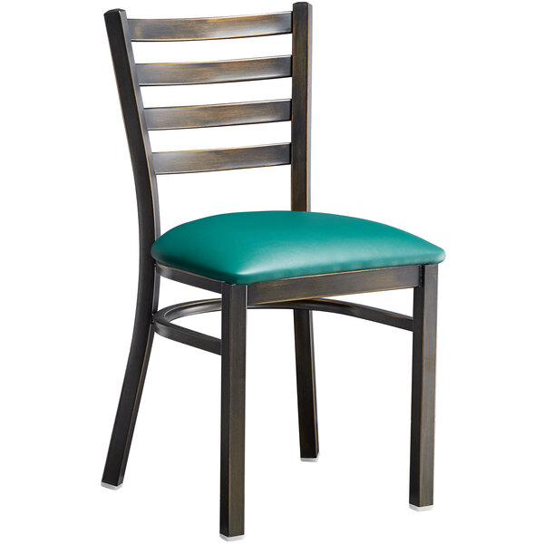 Vintage Finish Wood Ladder Back Chair with Black Vinyl Seat - Detached ...