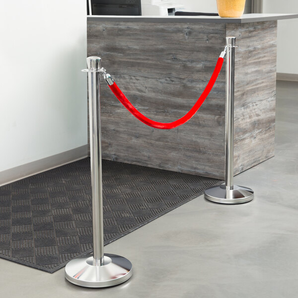 Red 5' Stanchion Rope with Silver Ends for Rope Style Crowd Control / G...