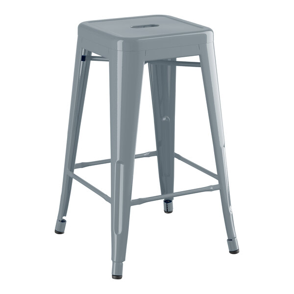 Alloy Silver Indoor Backless Barstool with Gray Fabric Magnetic Cushion