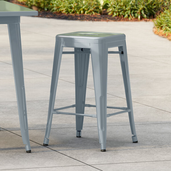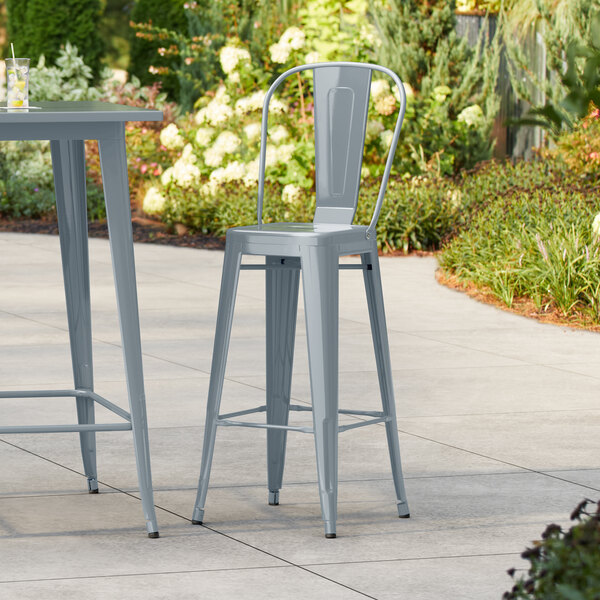 Silver Powder Coated Aluminum Outdoor Barstool