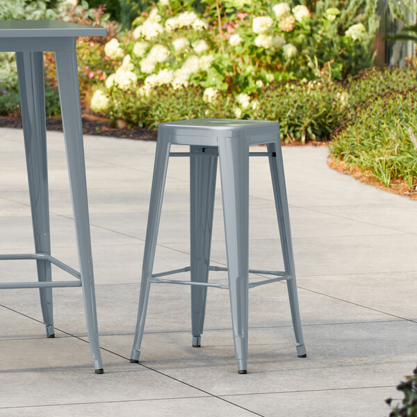 Alloy Nickel Gray Outdoor Backless Barstool with Gray Fabric Magnetic C...