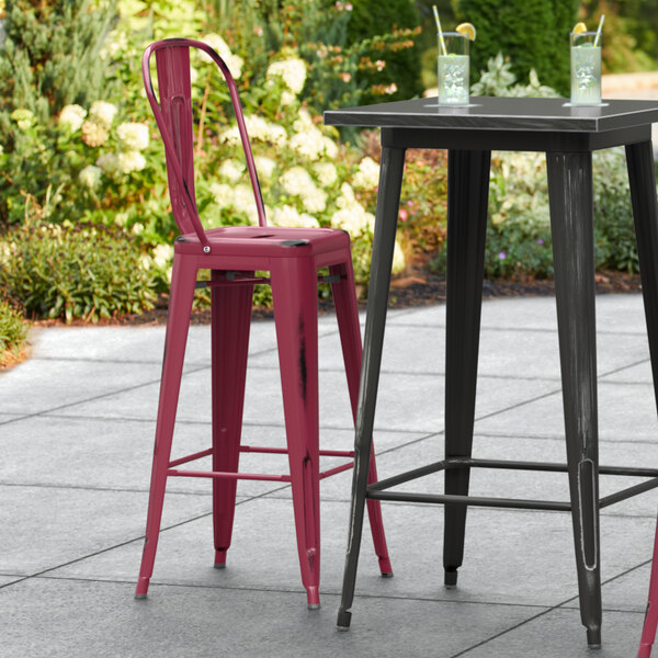 Alloy Distressed Ruby Red Outdoor Cafe Barstool
