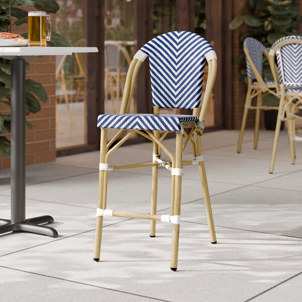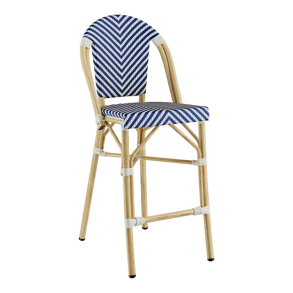 Bistro Blue and White Teslin Counter Height Outdoor Side Stool