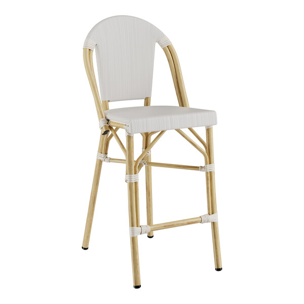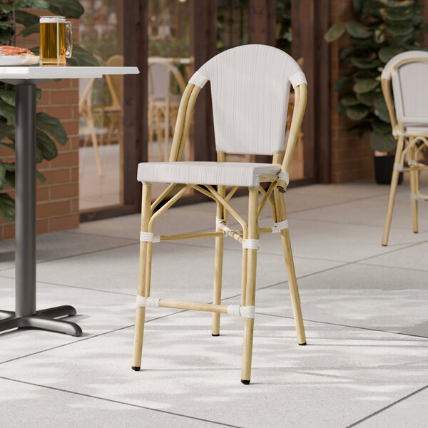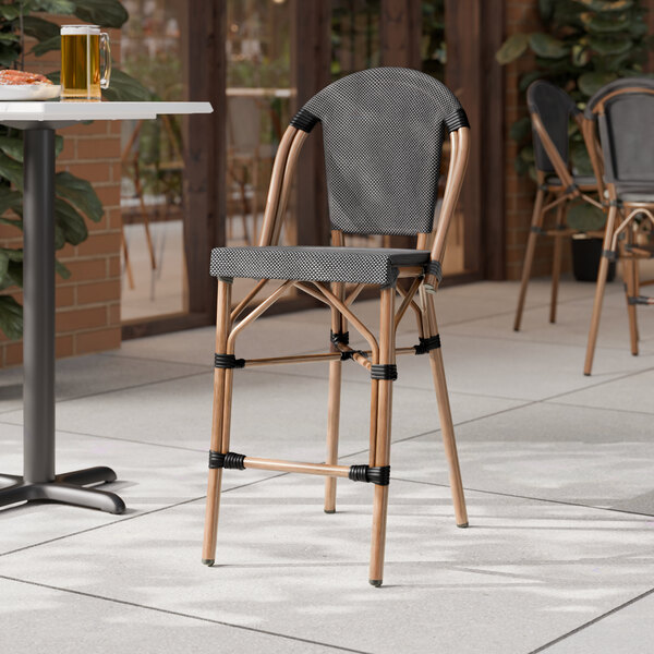Bistro Black and White Birdseye Weave Rattan Outdoor Side Barstool