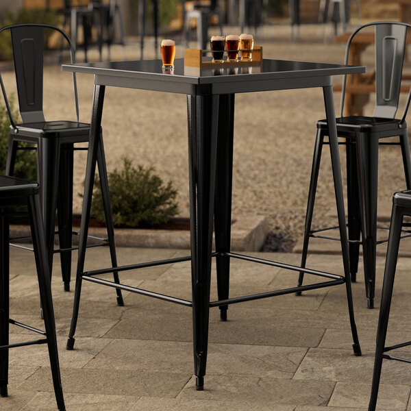 Alloy 24" x 24" Distressed Onyx Black Bar Height Outdoor Table