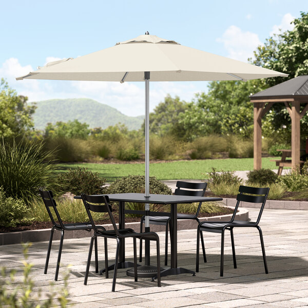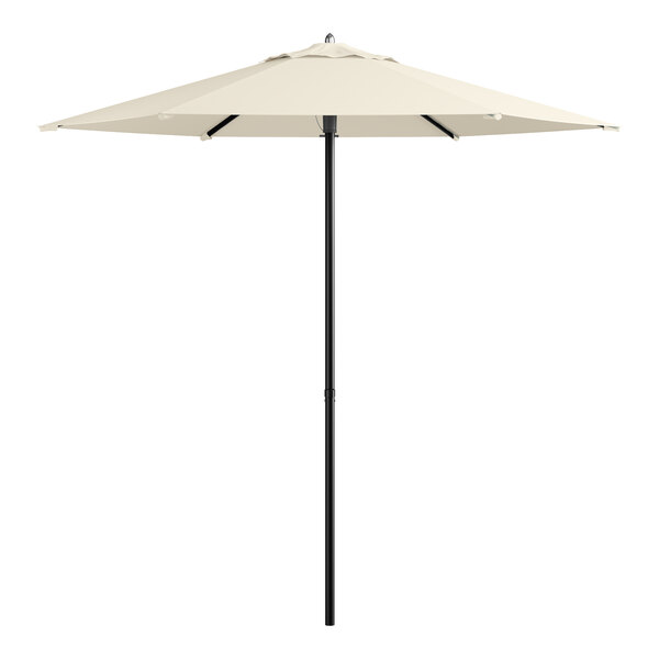 6' Round Fossil White Push Lift Black Steel Umbrella