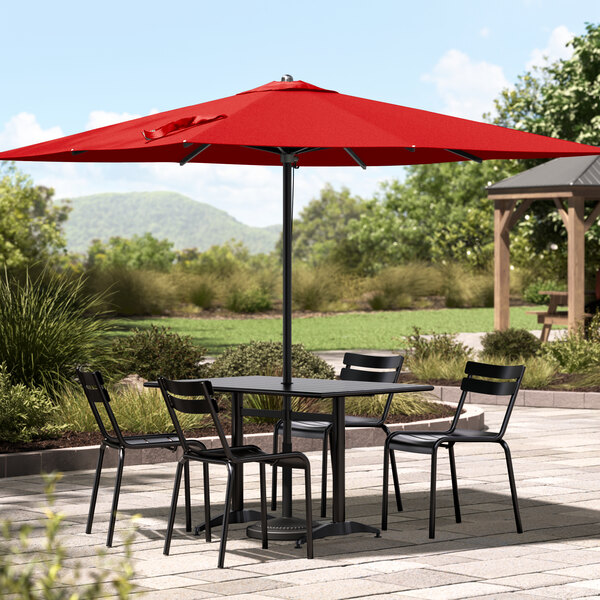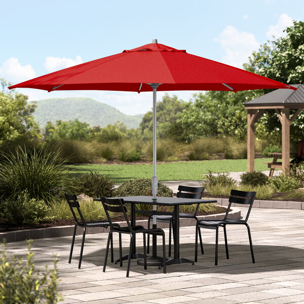 9' Round Carnation Red Crank Lift Auto Tilt Black Aluminum Umbrella