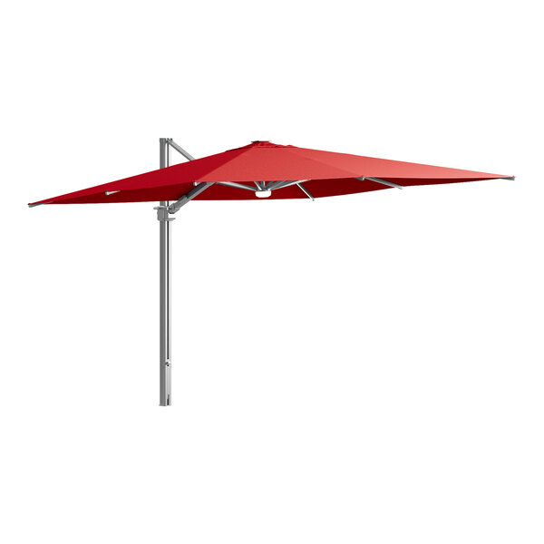 9' Round Carnation Red Crank Lift Auto Tilt Silver Aluminum Umbrella