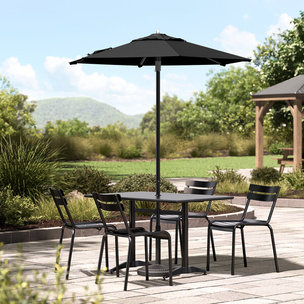 6 1/2' Square Raven Black Push Lift Black Aluminum Umbrella