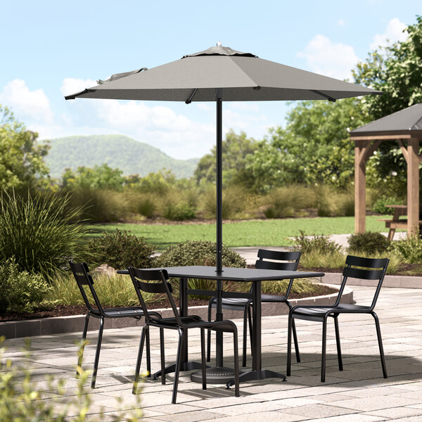 7 1/2' Round Ash Gray Push Lift Black Steel Umbrella