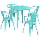 Alloy 31 1/2" x 31 1/2" Pearl White Standard Height Outdoor Table with 4 Arm Chairs