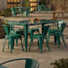 This set is made of durable steel and coated to withstand years of use. The vibrant emerald-green color adds a fun, colorful touch to any setting and is sure to be a contemporary design choice that guests love. Comfortable and stylish, this strong yet lightweight set is an excellent choice for your indoor or outdoor dining area. To save you money on shipping costs, the table ships unassembled. All required assembly hardware is included so you can quickly set it up in its proper space and let your guests enjoy! The chairs ship fully assembled.