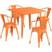 Alloy 35 1/2" x 35 1/2" Amber Orange Standard Height Outdoor Table with 4 Arm Chairs