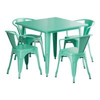 Alloy 35 1/2" x 35 1/2" Aquamarine Standard Height Outdoor Table with 4 Arm Chairs