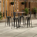 Ready to withstand daily outdoor use, the 4 Alloy black outdoor cafe barstools are constructed of durable steel and are e-coated and powder coated for rust and corrosion resistance as well as extra protection against everyday wear and tear. The frames are reinforced with additional under-seat cross bracing to provide strength and stability without adding extra bulk or weight to this sleek design. The black color adds a sleek, modern touch to any setting and is sure to be a contemporary design choice that guests love.