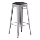 Alloy Silver Indoor Backless Barstool with Black Vinyl Cushion
