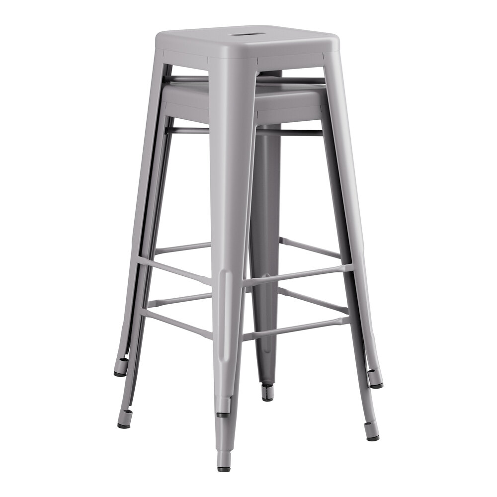 This stool is made of durable steel and coated to withstand years of use. The gray color adds a sleek, modern touch to any setting and is sure to be a contemporary design choice that guests love. Comfortable and stylish, this strong yet lightweight stool is an excellent choice for your indoor dining area. To save time and hassle, the barstool ships assembled. The cushion ships detached from the stool.