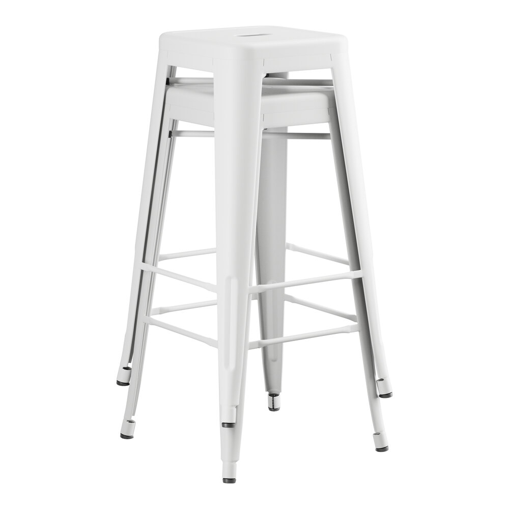 This stool is made of durable steel and coated to withstand years of use. The pearl-white color adds a sleek, modern touch to any setting and is sure to be a contemporary design choice that guests love. Comfortable and stylish, this strong yet lightweight stool is an excellent choice for your indoor dining area. To save time and hassle, the barstool ships assembled. The cushion ships detached from the stool.