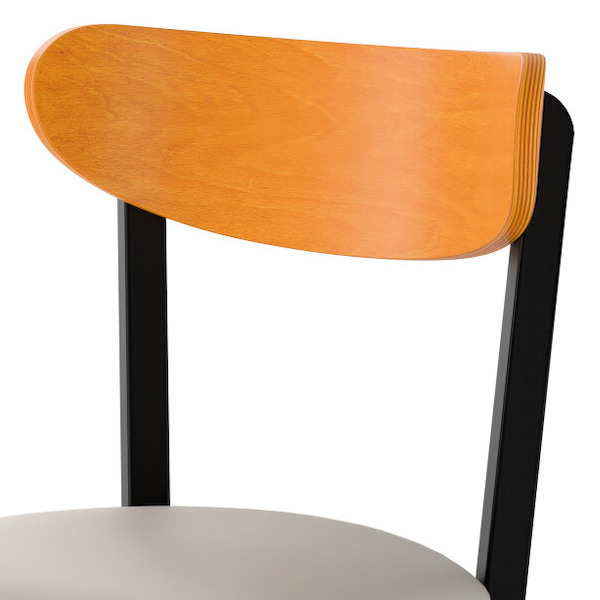 This bar stool's wooden Boomerang back and padded seat combine with its modern steel frame to instill a unique look in any location. Plus, since this bar stool's back is contoured for a customer's back, it will provide comfort while maintaining a distinct appearance.
