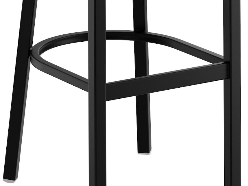 The bar stool's built-in footrest gives customers a place to rest their legs.