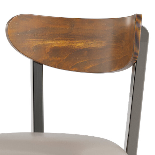 This bar stool's wooden Boomerang back and padded seat combine with its modern steel frame to instill a unique look in any location. Plus, since this bar stool's back is contoured for a customer's back, it will provide comfort while maintaining a distinct appearance.
