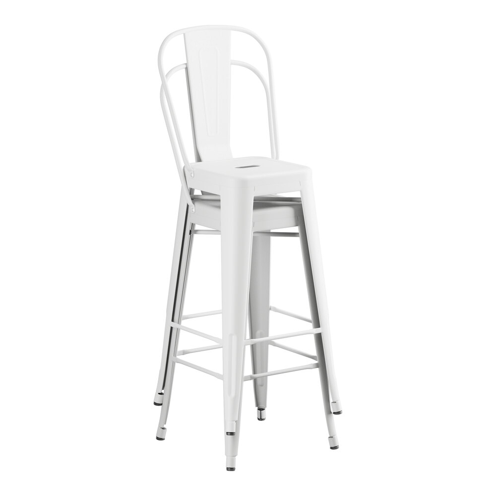 This stool is made of durable steel and coated to withstand years of use. The pearl-white color adds a sleek, modern touch to any setting and is sure to be a contemporary design choice that guests love. Comfortable and stylish, this strong yet lightweight stool is an excellent choice for your indoor dining area. To save you money on shipping costs, this barstool ships with the backrest and cushion detached from the stool.