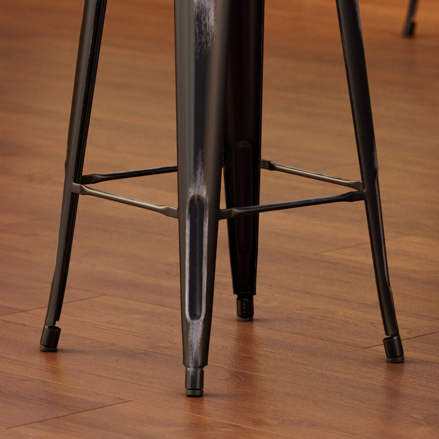 This stool is made of durable steel and coated to withstand years of use. The distressed onyx-black color adds a sleek, modern touch to any setting and is sure to be a contemporary design choice that guests love. Comfortable and stylish, this strong yet lightweight stool is an excellent choice for your indoor dining area. To save you money on shipping costs, this barstool ships with the backrest and seat detached from the stool. All required assembly hardware is included.