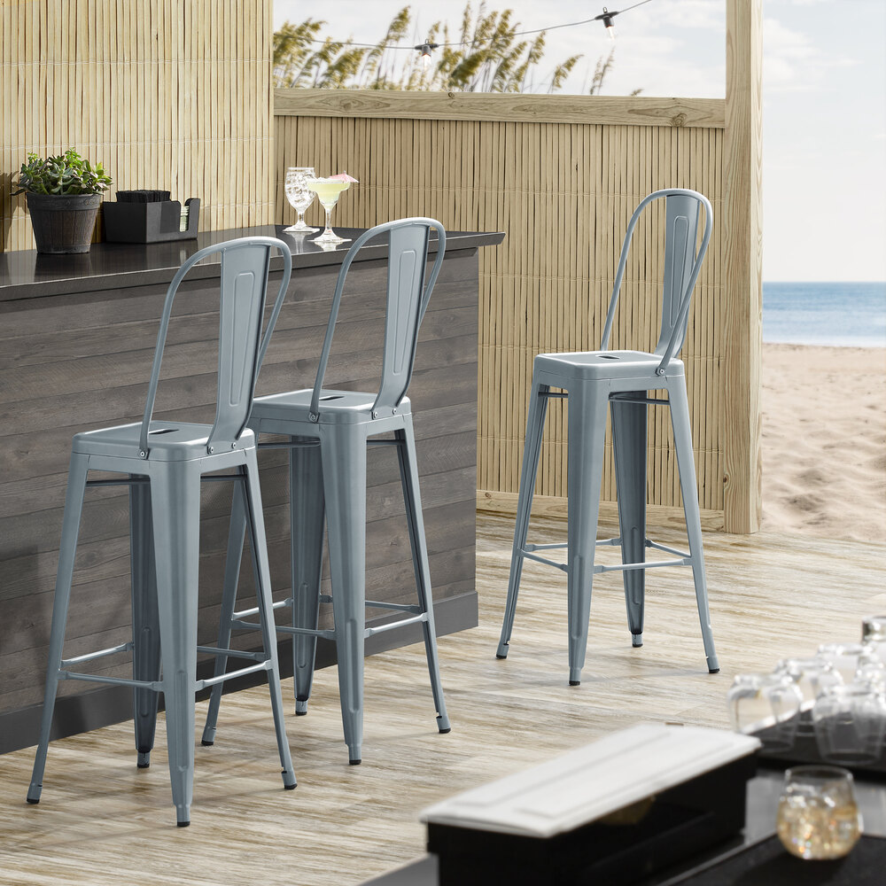 Take your modern restaurant, cafe, or bistro to the next level with this Lancaster Table & Seating Alloy Series charcoal outdoor cafe barstool!