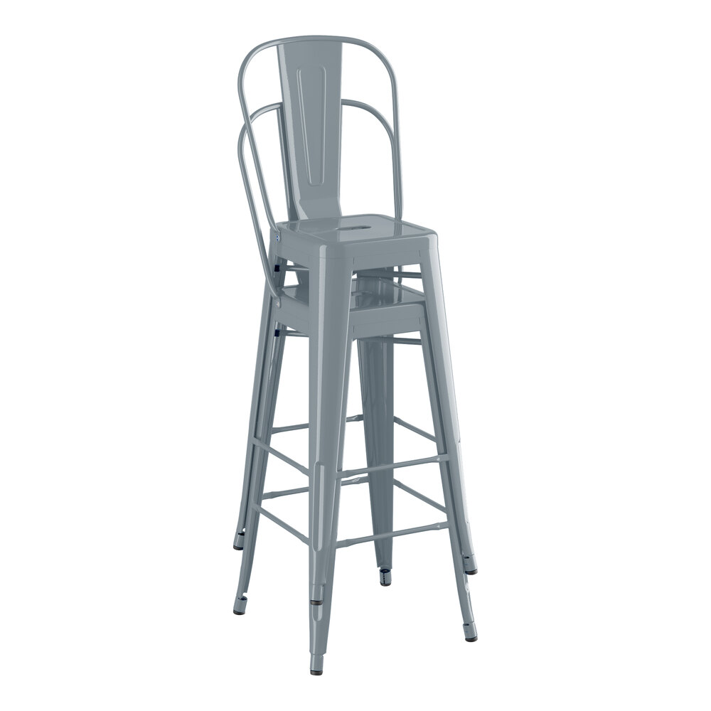 Boasting a 400 lb. weight capacity, this industrial barstool includes a footrest to reduce pressure on your customers' legs and lower backs. To ensure that your customers are free to enjoy your signature drinks, appetizers, entrees, and desserts, it features a supportive back and comfortable seat with a raised, rounded lip for a sleek, minimalist look.