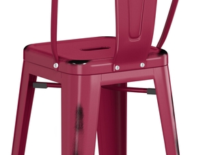 This stool is made of durable steel and double coated to withstand years of use. The distressed mulberry color adds a sleek, modern touch to any setting and is sure to be a contemporary design choice that guests love. Comfortable and stylish, this strong yet lightweight stool is an excellent choice for your indoor or outdoor dining area. To save you money on shipping costs, this chair ships with the backrest detached from the stool. All required assembly hardware is included.