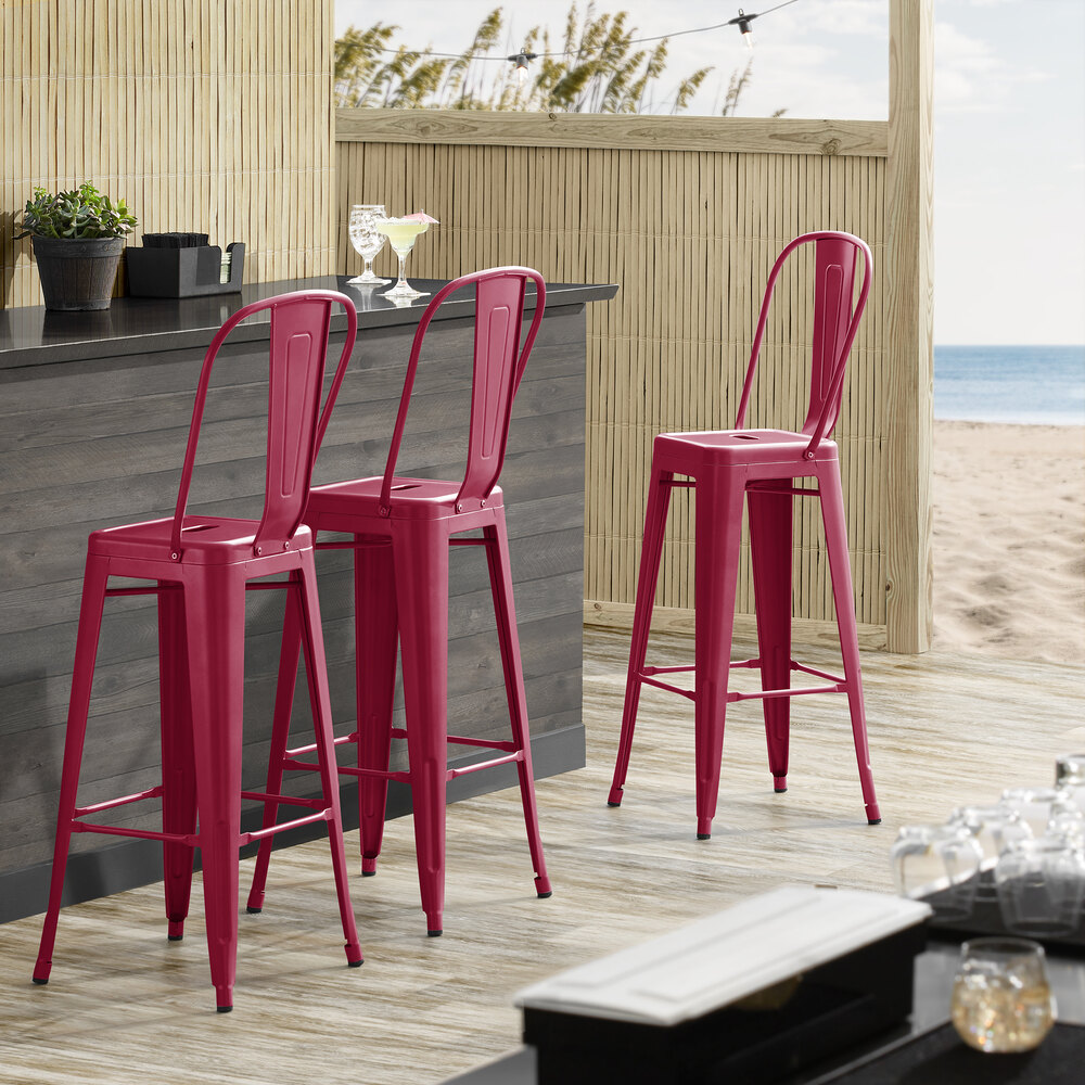 This stool is made of durable steel and double coated to withstand years of use. The mulberry color adds a sleek, modern touch to any setting and is sure to be a contemporary design choice that guests love. Comfortable and stylish, this strong yet lightweight stool is an excellent choice for your indoor or outdoor dining area. To save you money on shipping costs, this chair ships with the backrest detached from the stool. All required assembly hardware is included.