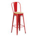 Alloy Ruby Red Indoor Cafe Barstool with Natural Wood Seat