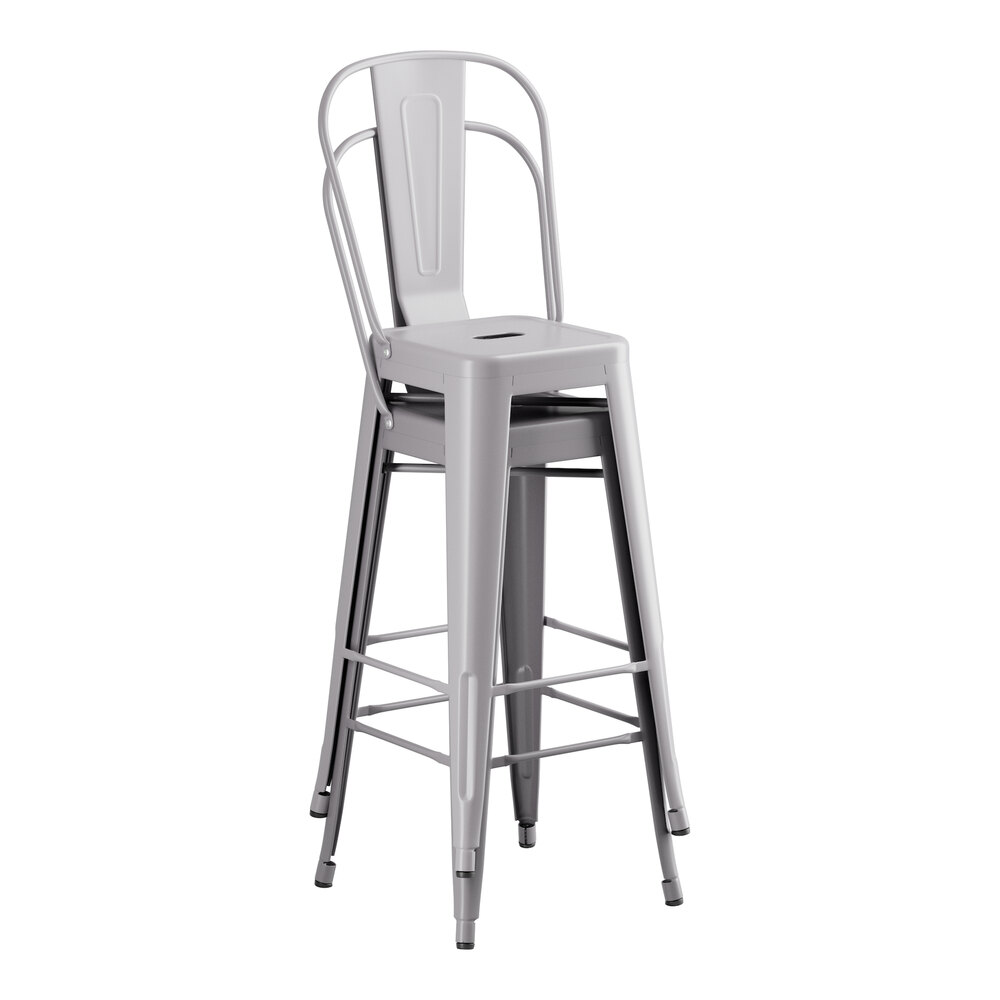 This stool is made of durable steel and coated to withstand years of use. The gray color adds a sleek, modern touch to any setting and is sure to be a contemporary design choice that guests love. Comfortable and stylish, this strong yet lightweight stool is an excellent choice for your indoor dining area. To save you money on shipping costs, this barstool ships with the backrest and seat detached from the stool. All required assembly hardware is included.