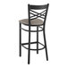 Seat your guests in comfort and style with this Lancaster Table & Seating black finish cross back bar stool with 2 1/2" dark gray vinyl padded seat.