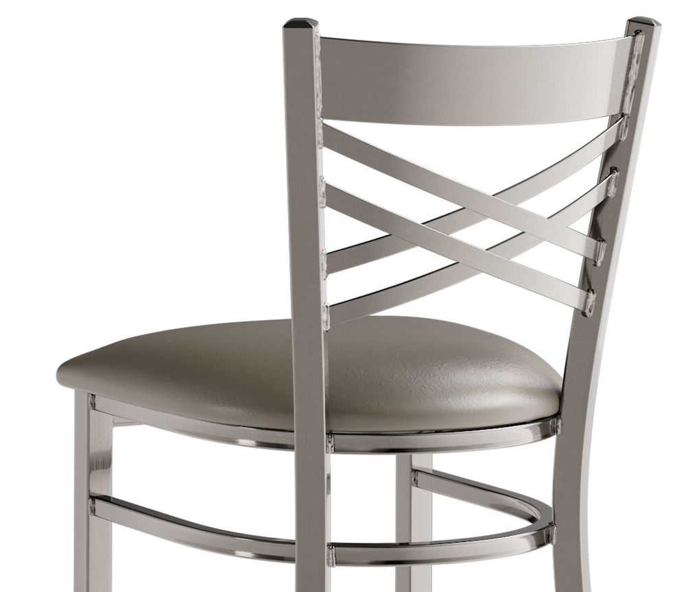 This bar stool's sleek padded seat combines with its contemporary cross back steel frame to instill a modern look in any location. Plus, since this bar stool's back is contoured for a customer's back, it will provide comfort while maintaining a distinct appearance.
