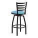 Seat your guests in comfort and style with this Lancaster Table & Seating black finish ladder back swivel bar stool with 2 1/2" blue vinyl padded seat.