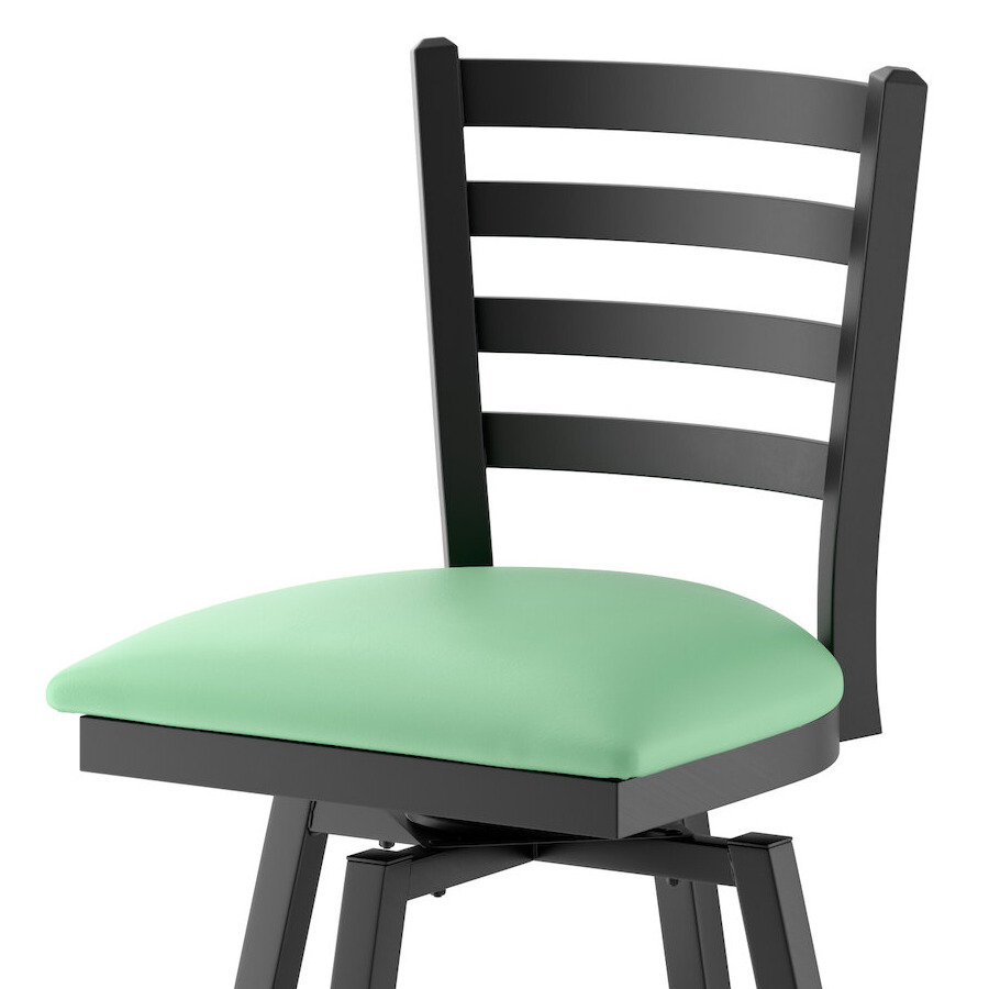 Black Finish Ladder Back Swivel Bar Stool with 2 1/2" Seafoam Vinyl Padded Seat