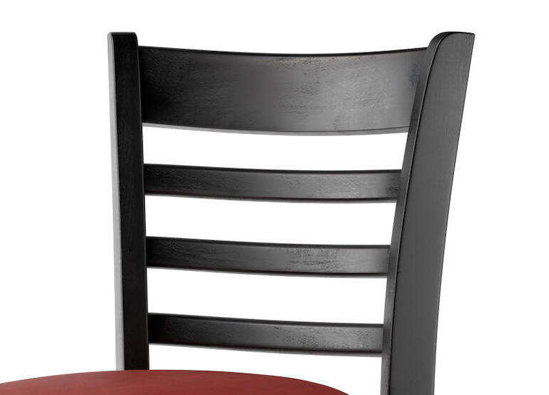 Black Finish Wood Ladder Back Bar Stool with Burgundy Vinyl Seat - Detached Seat