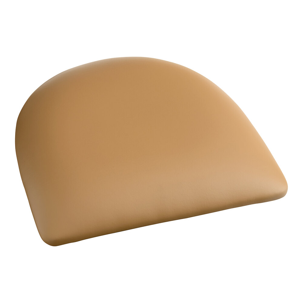 The 2 1/2" thick light brown vinyl padded seat provides exceptional comfort for your guests, and it's also durable and easy to clean! It is made with fire-retardant foam for added safety.