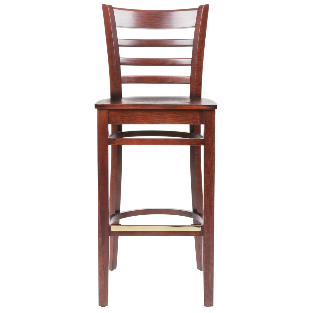 Seat your guests in comfort and style with this Lancaster Table & Seating mahogany finish wood ladder back bar stool with mahogany wood seat.
