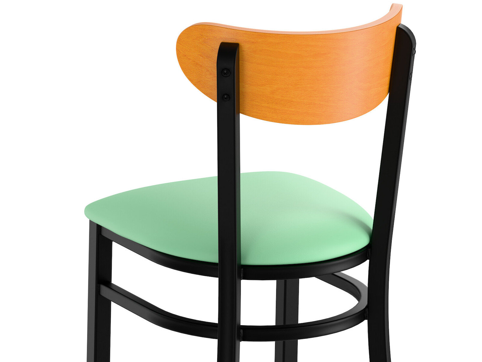 Boomerang Black Finish Chair with Seafoam Vinyl Seat and Cherry Wood Back