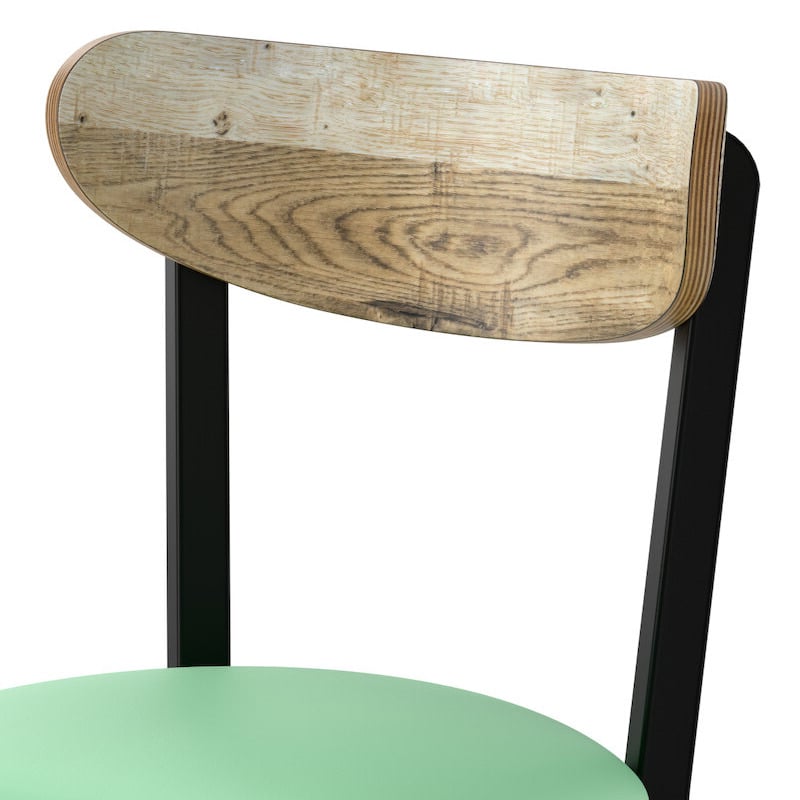 Boomerang Black Finish Chair with Seafoam Vinyl Seat and Driftwood Back