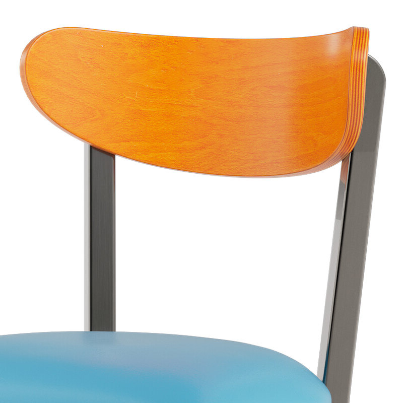 This chair's wooden Boomerang back and padded seat combine with its modern steel frame to instill a unique look in any location. Plus, since this chair's back is contoured for a customer's back, it will provide comfort while maintaining a distinct appearance.