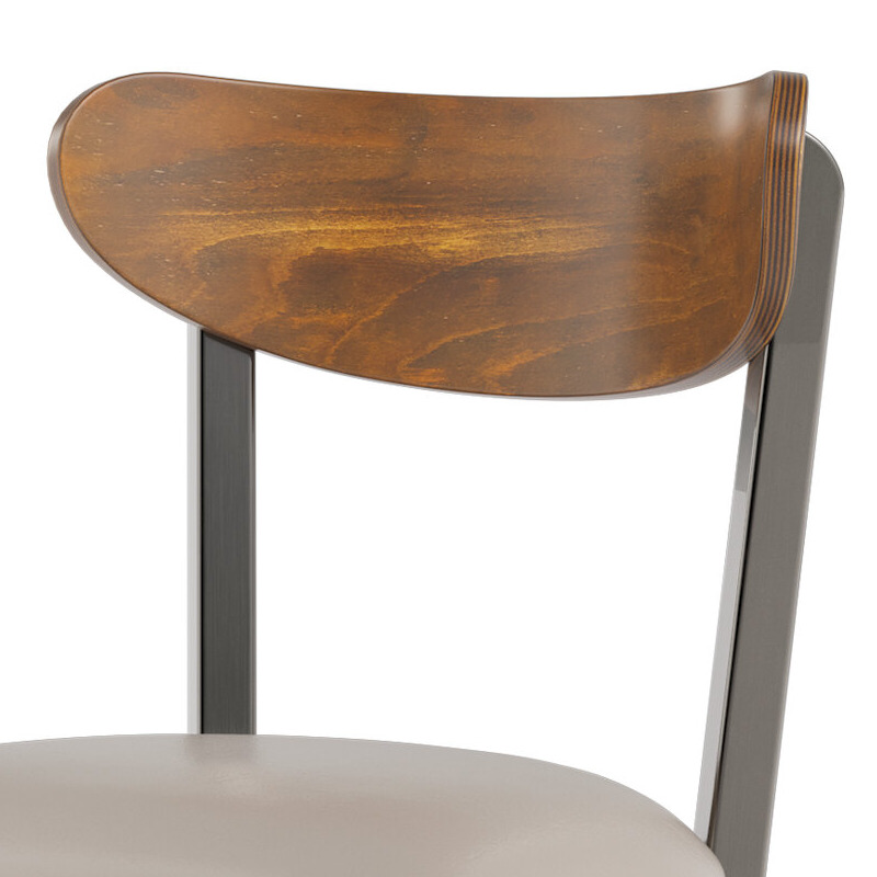 Boomerang Clear Coat Finish Chair with Light Gray Vinyl Seat and Vintage Wood Back