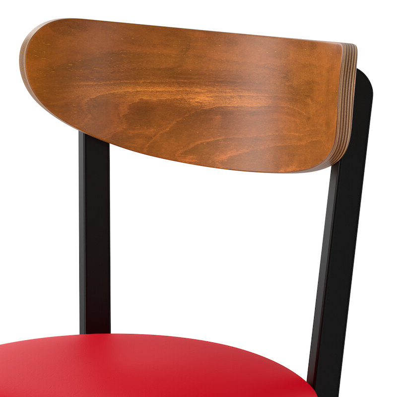Boomerang Black Finish Chair with Red Vinyl Seat and Vintage Wood Back
