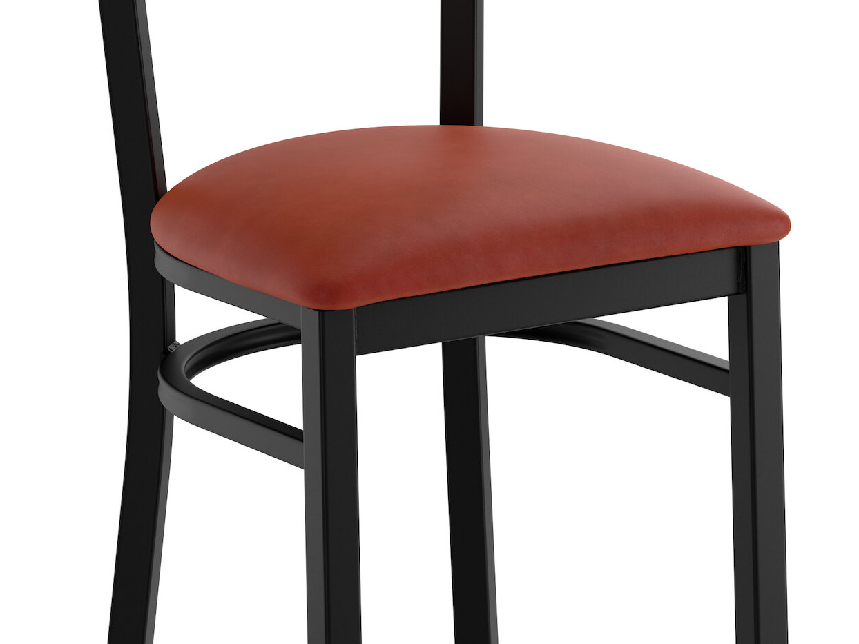 This chair's sturdy steel frame provides unmatched durability in your commercial dining room. It can hold up to 330 lb. of weight thanks to the steel frame and supports under the seat. Additionally, the black finish on this chair ensures longevity through everyday wear and tear, resisting stains, scratches, and smudges.