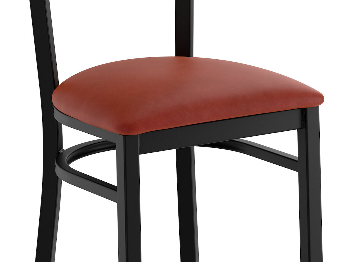 This chair's sturdy steel frame provides unmatched durability in your commercial dining room. It can hold up to 330 lb. of weight thanks to the steel frame and supports under the seat. Additionally, the black finish on this chair ensures longevity through everyday wear and tear, resisting stains, scratches, and smudges.