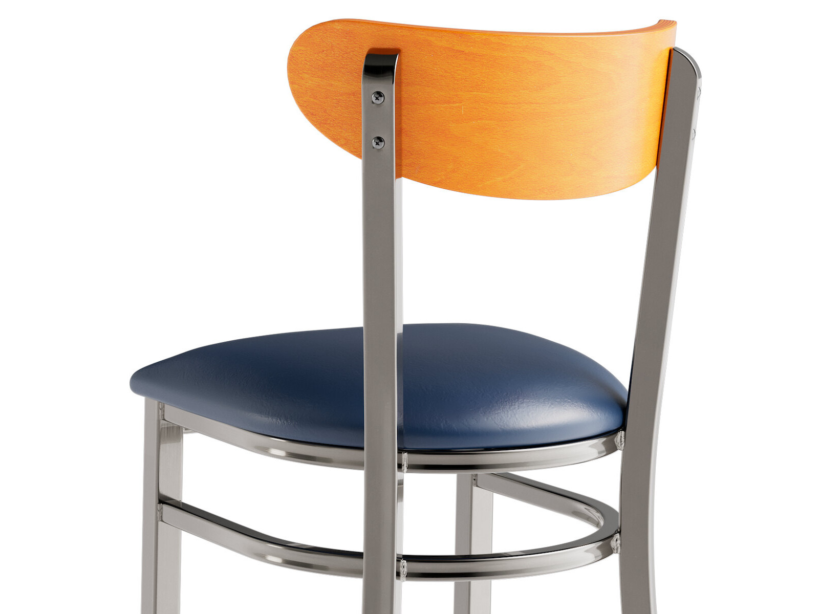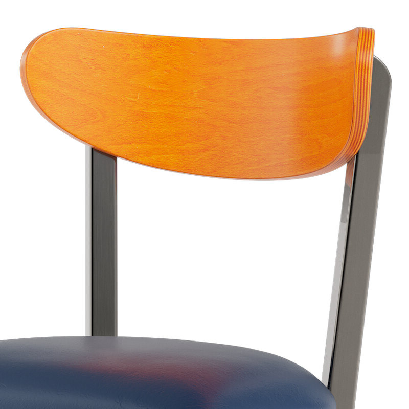 This chair's wooden Boomerang back and padded seat combine with its modern steel frame to instill a unique look in any location. Plus, since this chair's back is contoured for a customer's back, it will provide comfort while maintaining a distinct appearance.