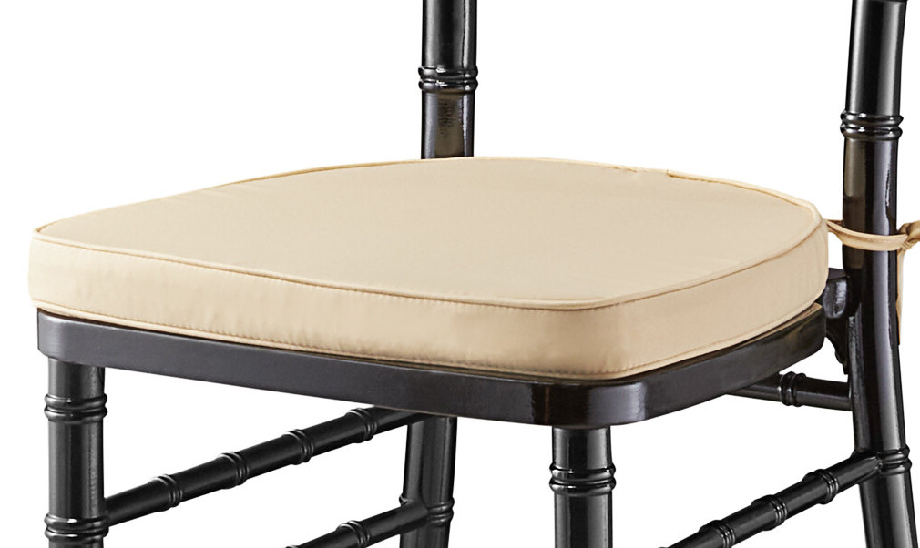 This chair comes complete with a 1 3/4" thick polyurethane sponge padded cushion to ensure that guests are seated comfortably at any event. This cushion has straps to hold it in place on the chair, and a zippered back allows the padding to be removed for laundering.